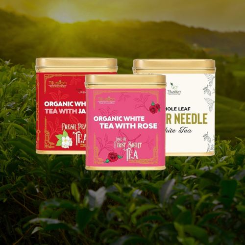 Tifusion Organic White Tea with Rose for Healthy Hair & Glowing Skin With Green World Healthiest Tea Antioxidant Herbal Cooler Tea