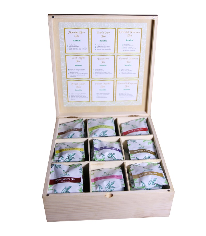 • CUSTOMIZATION: We do the customization of the boxes as well as the teas with company logo/ Create an i-con/ Box colour (matte chocolate brown/ Matte white) / Name print/ Teas of our your choice. Selection of the teas depends on the availability of the teas. You can simply refill the tea bags with our tifusion’s assorted tea bag box.