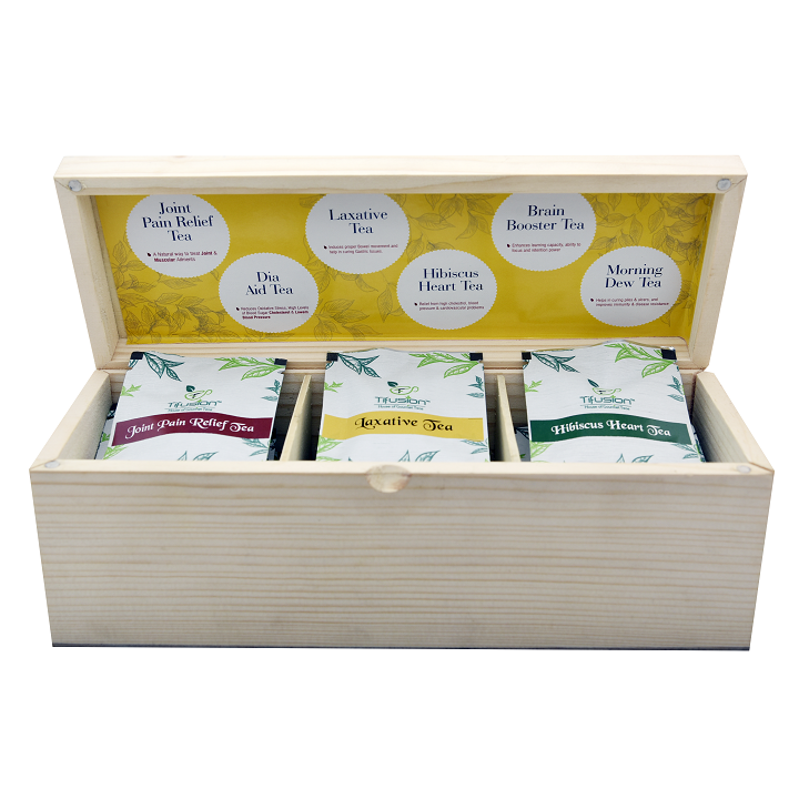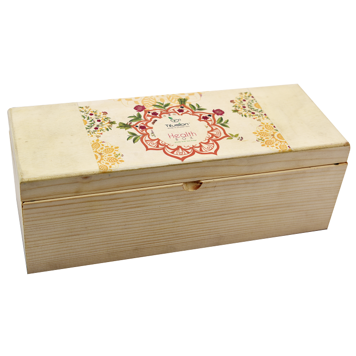 This unique gift of health is a perfect boon for every tea lovers & Health enthusiast. Handcrafted pinewood box with 18 whole leaf wellness tea in single chamber/ Pyramid tea bags. Stay hydrated, loose weight, boost your immune system and more all by sipping our healthy teas all day long.