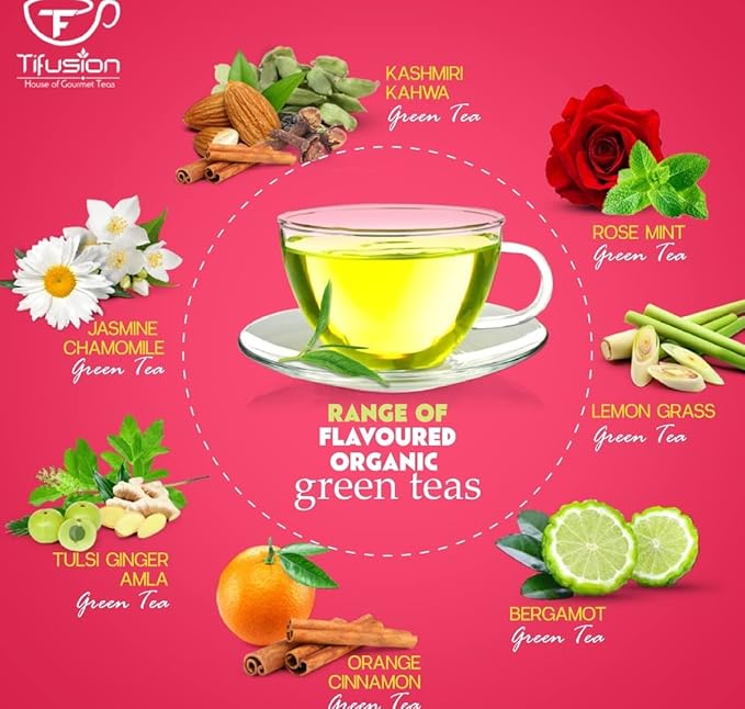 Tifusion Jasmine chamomile Organic Green Tea With 100% Natural & Pure Ingredients For calm Mind | Aids Sleep | Best As A Hot Drink Or Iced Cooler Tea BagsTifusion Jasmine chamomile Organic Green Tea With 100% Natural & Pure Ingredients For calm Mind | Aids Sleep | Best As A Hot Drink Or Iced Cooler Tea Bags