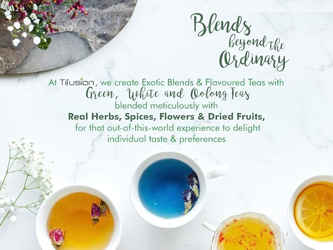 • FRESHNESS : Tifusion Provides All Full, Whole Leaf Teas Only, As They Are The Most Premium Quality Teas, Plucked With A Lot Of Care, Unlike The Dust Grade Large Machine Made Teas Which Lose Their Efficacy Due To Industrial Milling. Moreover We Are The Manufacturer, Producer For Such Teas, And Closet To The Tea Estates And Hence Provide Our Customers The Freshest Teas Directly From The Garden To Their Cups At The Earliest Possible.