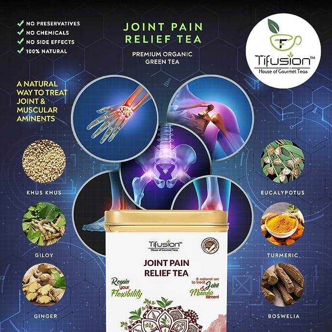 Tifusion Joint Pain Relief Tea with Boswellia, Punarnava, Moringa, Ashwagandha, Giloy | Joint Support Herbal Tea to Reduce Stiffness & InflammationTifusion Joint Pain Relief Tea with Boswellia, Punarnava, Moringa, Ashwagandha, Giloy | Joint Support Herbal Tea to Reduce Stiffness & Inflammation