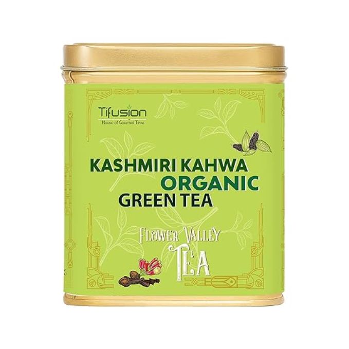 Tifusion Kashmiri Kahwa Organic Green Tea With Almond, Cardamom, Clove, Ginger, Cinnamon, Rose & Saffron for Digestion Acne and Dry SkinTifusion Kashmiri Kahwa Organic Green Tea With Almond, Cardamom, Clove, Ginger, Cinnamon, Rose & Saffron for Digestion Acne and Dry Skin