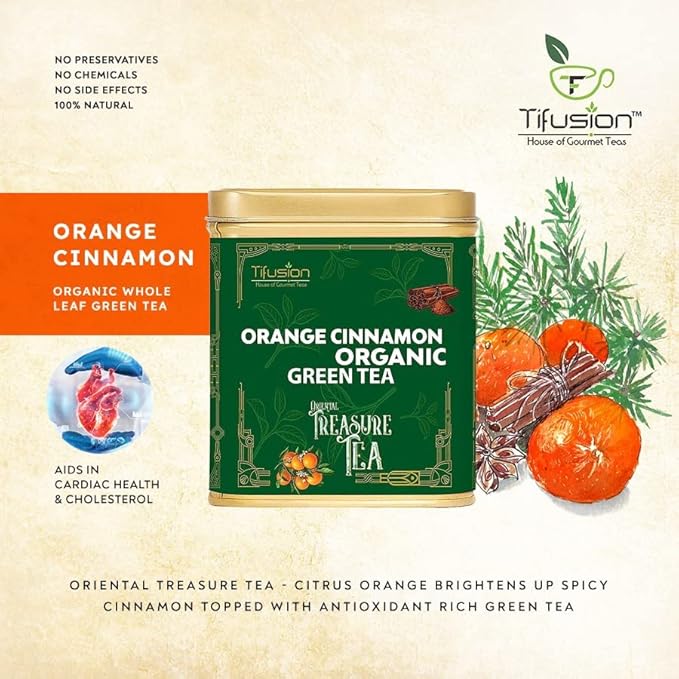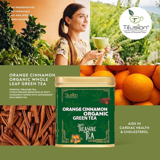 Tifusion Orange Cinnamon Organic Green Tea With 100% Natural And Pure Ingredients For Cholesterol, Healthy Heart & Blood Pressure | Rich In Antioxidant & Vitamin C | Best As A Hot Drink Or Iced Cooler | Whole Leaf Garden Fresh Darjeeling Single Estate Green TeaTifusion Orange Cinnamon Organic Green Tea With 100% Natural And Pure Ingredients For Cholesterol, Healthy Heart & Blood Pressure | Rich In Antioxidant & Vitamin C | Best As A Hot Drink Or Iced Cooler | Whole Leaf Garden Fresh Darjeeling Single Estate Green Tea