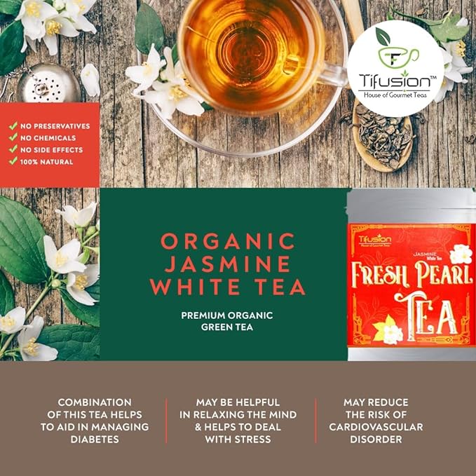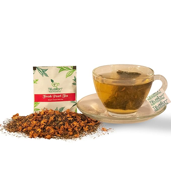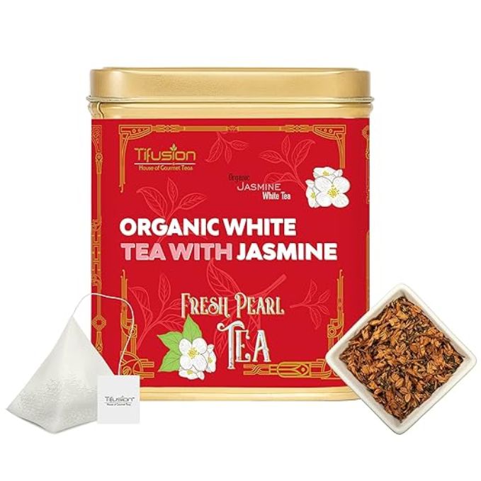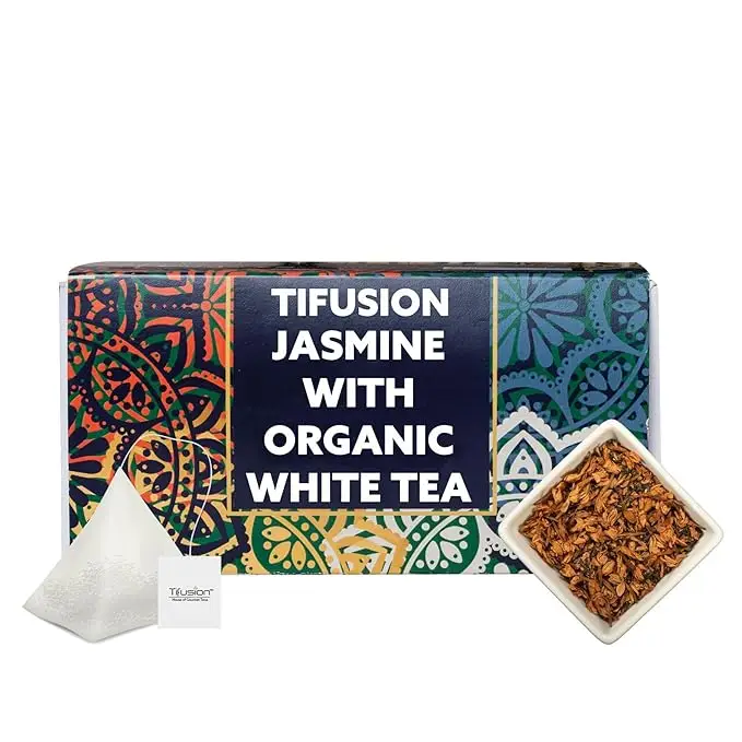 Tifusion Organic White Tea With Jasmine For Healthy Glowing Skin And Immunity Booster Anti oxidant Rich Aromatic Tasty World Healthiest Tea (20 Tea Bags 20 Serving Cups)