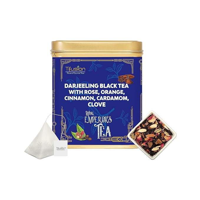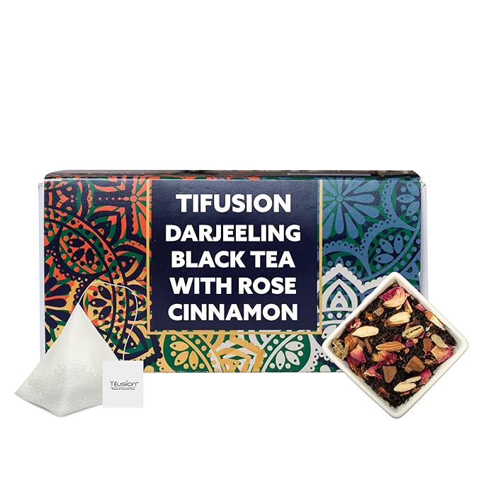Tifusion Darjeeling Black Tea with Rose, Orange, Cinnamon, Cardamom, and Clove is a unique blend that offers multiple benefits for digestion and glowing skin.