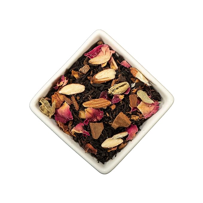 The combination of Darjeeling black tea, rose, orange, cinnamon, cardamom, and clove creates a delightful and aromatic blend that is both soothing and invigorating.