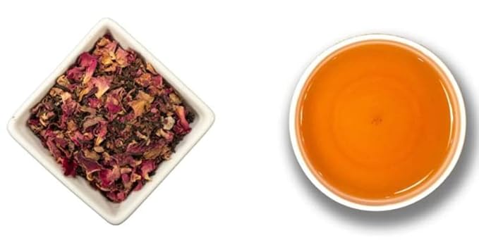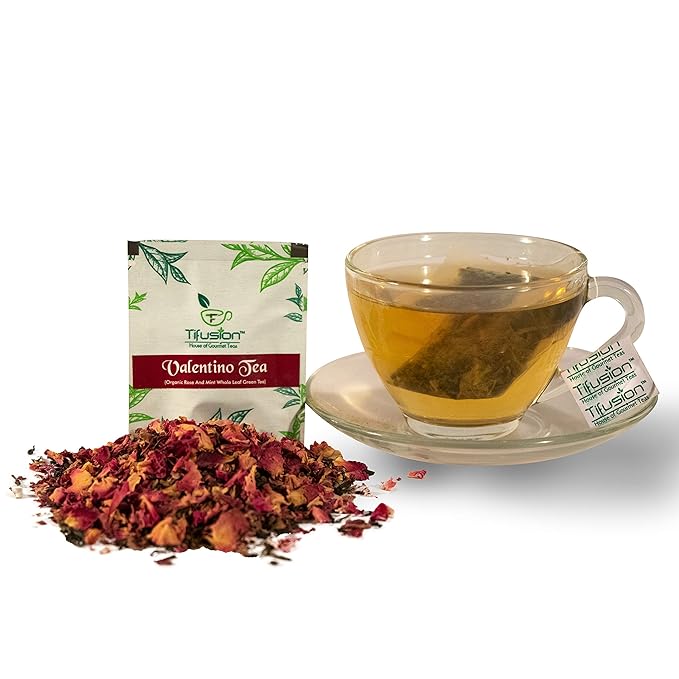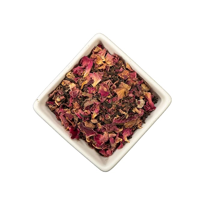 100% WHOLE LEAF ORGANIC GREEN TEA WITH ROSE PETALS AND MOROCCO MINT – This Tea Can Be Enjoyed Both Sizzling Hot And As A Refreshing Iced Tea Cooler. This Mood Uplifting Elixir Is Extremely Healthy 100% Natural, Packed With Vitamins & Minerals. Aphrodisiac Rose Has Antispasmodic Properties.