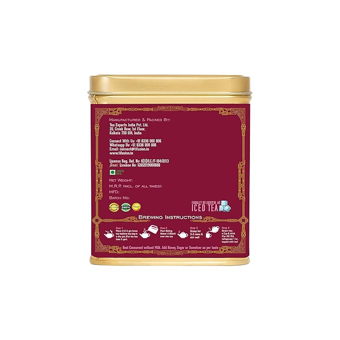 BREWING INSTRUCTIONS Place 2-2.5 Gm Loose Tea Leaf/One Tea Bag In A Dry Pot.(For Ice Tea Take 5 Gm) Pour Boiling Water (180ml) Over The Tea. Steep For 3-5 Minutes & Stir Well. Strain Into A Cup & Drink. (For Ice Tea Refrigerate 1 Hour Topped With Ice).Best Consume Without Milk. Add Sugar Honey & Sweetener As Per Taste.