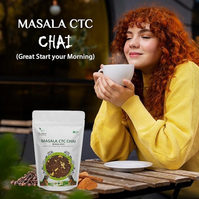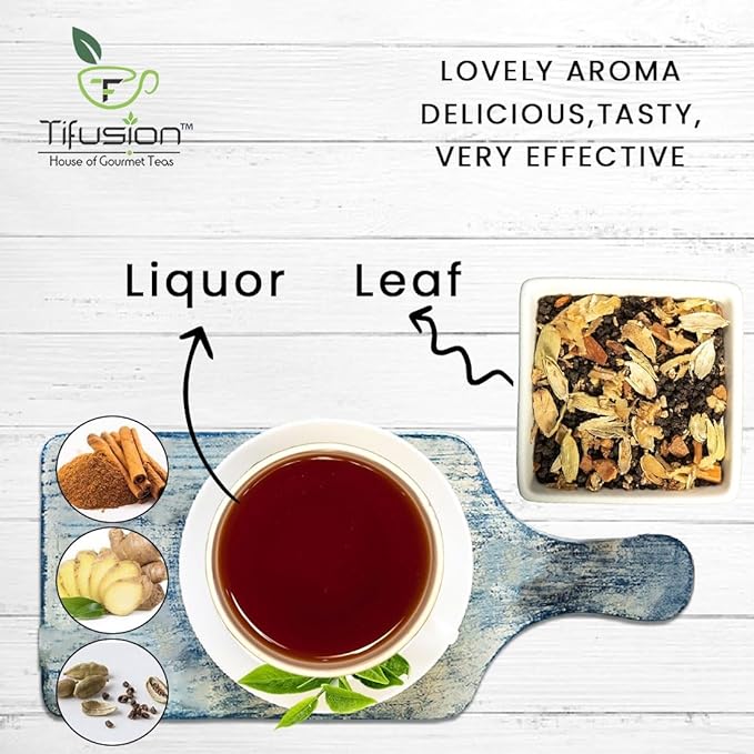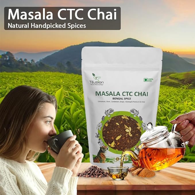 Tifusion Signature Masala CTC chai with Cinnamon Cardamom Clove Ginger Nutmeg Premium CTC Tea Desi Kadha Chai With Long Leaves Bengal SpiceTifusion Signature Masala CTC chai with Cinnamon Cardamom Clove Ginger Nutmeg Premium CTC Tea Desi Kadha Chai With Long Leaves Bengal Spice